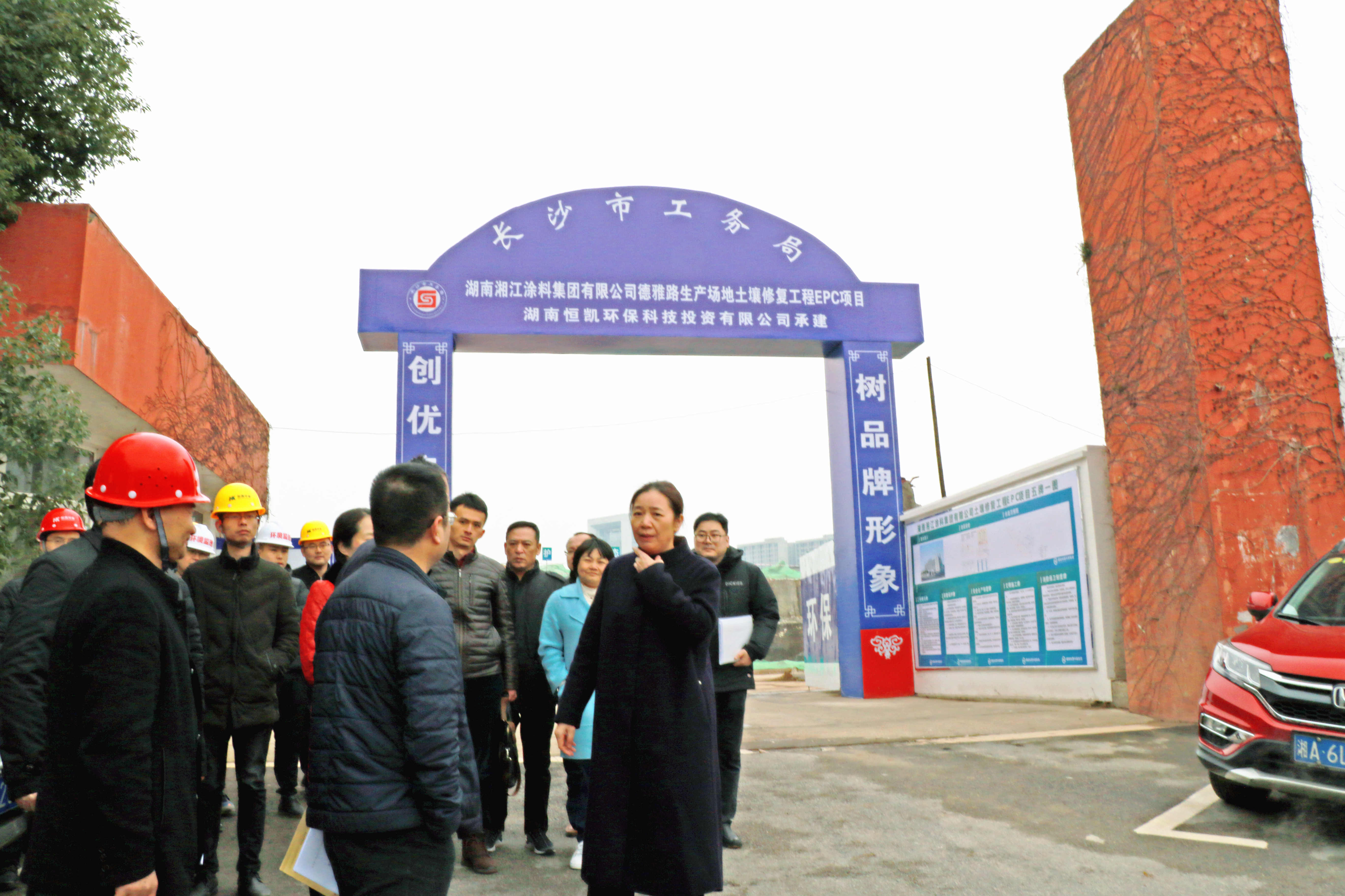 1月31日,长沙市人民政府副市长廖建华莅临恒凯环保承建的湖南湘江涂料集团有限公司德雅路生产场地土壤修复EPC项目调研考察,并对项目一线员工表示慰问。湖南省机关事务局副局长刘亚楼,长沙市国土储备中心主任陈志敏,长沙市工务局局长席超波、副局长熊翠玲、项目负责人何缘,开福区环保局局长肖扬,恒凯环保总裁蒋卫山等领导陪同考察。
