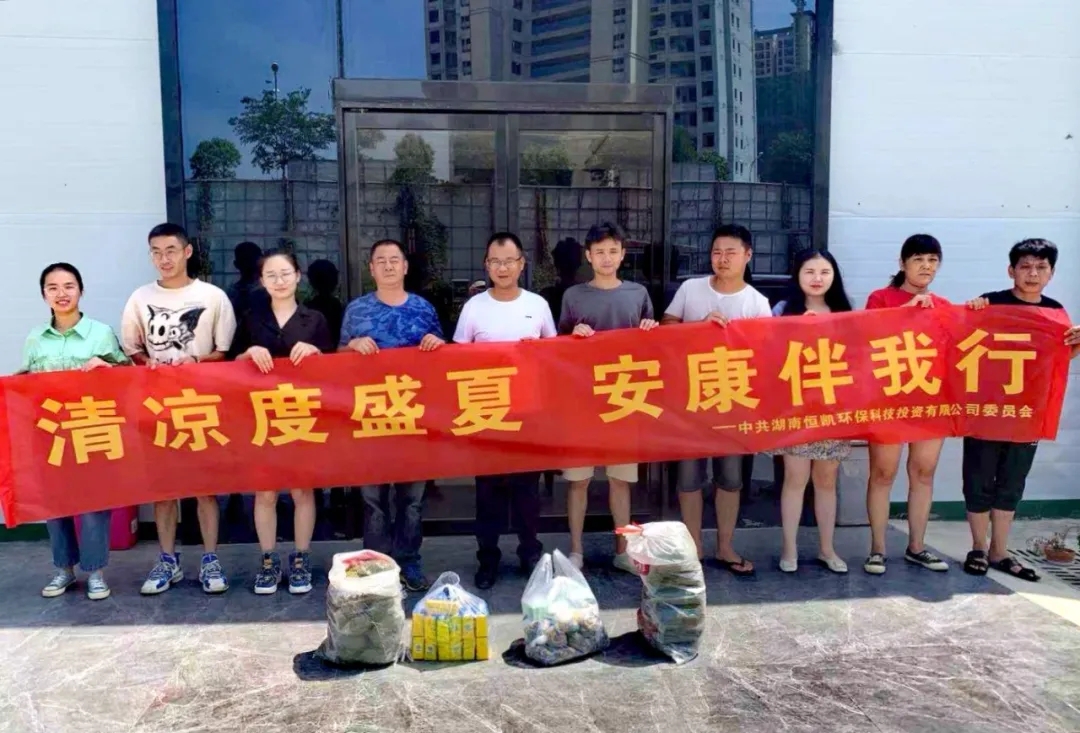 骄阳似火,酷暑难耐,入伏以来,湖南开启“桑拿”模式,气温直冲36度。为做好一线员工防暑降温工作,体现集团人文关怀,7月15日、16日,恒凯环保集团工会开展“关爱职工,夏送清凉”慰问活动,向奋战在高温烈日下的项目一线员工送去清凉与关怀。