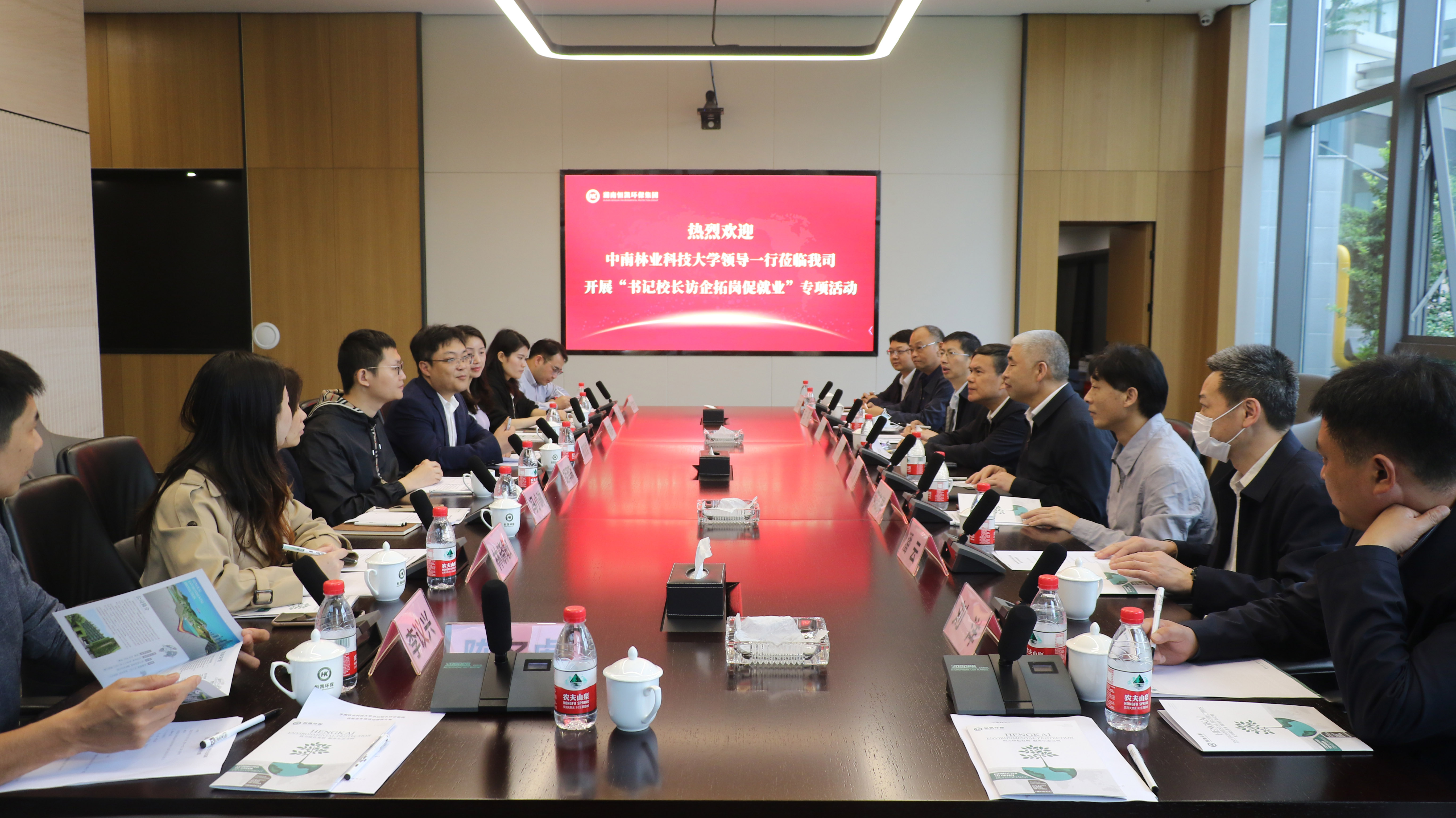 中南林业科技大学副校长闫文德对恒凯环保的实力及发展方向表示了认可。他表示,希望借此次访企拓岗活动,在研发平台、人才培养及科学研究方面进行深入合作。中南林业科技大学党委书记王汉青也表示中南林学校专业与恒凯环保产业发展方向是密切相关的,双方在课题申报、研究平台、人才培养等方面都有良好的合作基础,在未来可以进一步深化产学研方向和人才培养的合作。