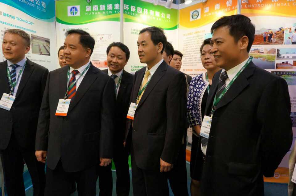 湖南省环保企业代表团与环保部科技标准司司长熊跃辉(右三)、陈副省长在展览会上合影
