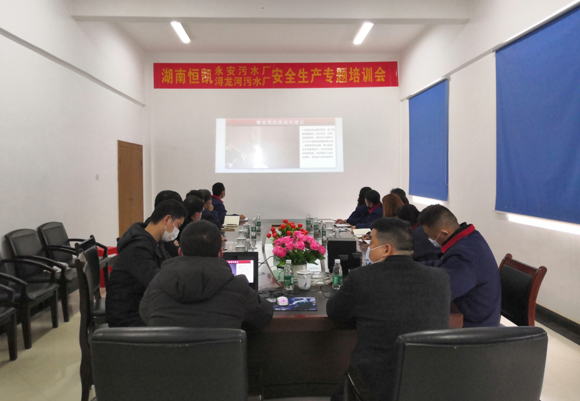 3月31日,永安污水厂再次邀请浏阳市高新区安监分局领导对永安污水厂、浔龙河污水厂的全体员工进行安全生产专题培训,并组织了安全生产知识考试。恒凯环保污水运营总监张粤湘参加了此次培训,并作出相关要求。